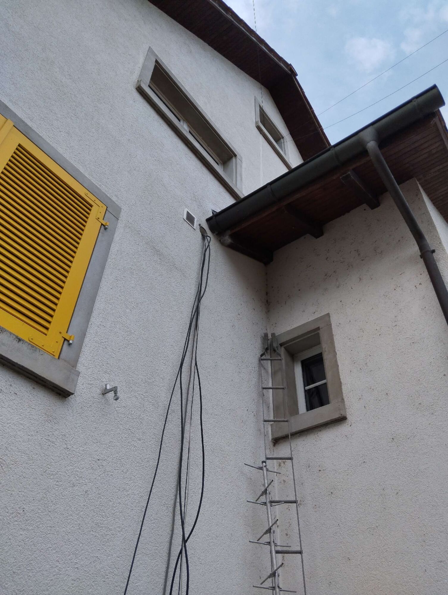 Unser Experte arbeitet in bis zu 10 Metern Höhe, um ein Lüftungsrohr von Wespen zu befreien. Je höher der Einsatzort, desto größer sind die Herausforderungen und Sicherheitsanforderungen. Um ein sicheres Arbeiten zu gewährleisten, nutzt er je nach Gegebenheit eine stabile Leiter oder ein zuverlässiges Gerüst.