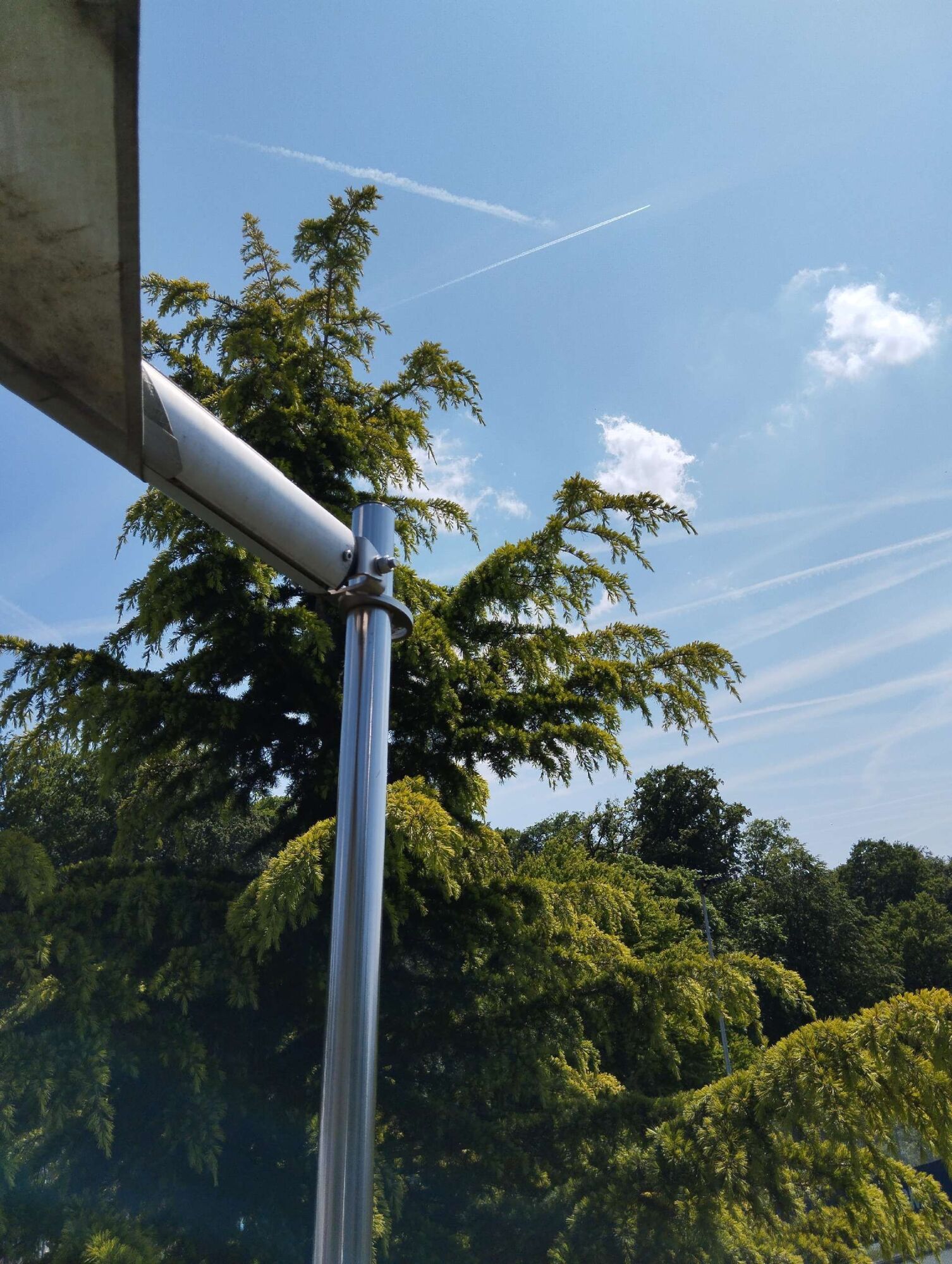 Unser Experte arbeitet in bis zu 10 Metern Höhe, um ein Lüftungsrohr von Wespen zu befreien. Je höher der Einsatzort, desto größer sind die Herausforderungen und Sicherheitsanforderungen. Um ein sicheres Arbeiten zu gewährleisten, nutzt er je nach Gegebenheit eine stabile Leiter oder ein zuverlässiges Gerüst.