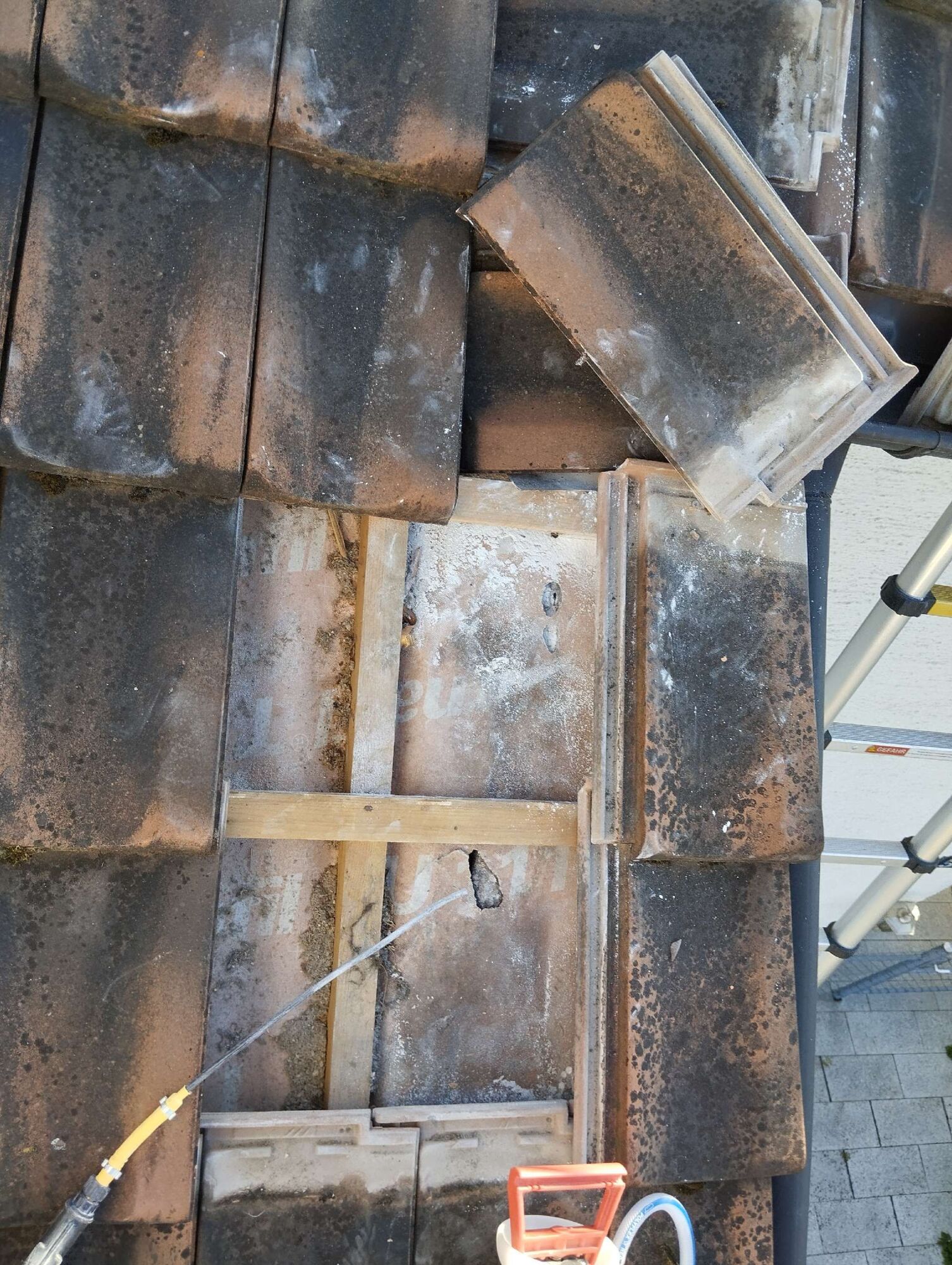Unser Experte arbeitet in bis zu 10 Metern Höhe, um ein Lüftungsrohr von Wespen zu befreien. Je höher der Einsatzort, desto größer sind die Herausforderungen und Sicherheitsanforderungen. Um ein sicheres Arbeiten zu gewährleisten, nutzt er je nach Gegebenheit eine stabile Leiter oder ein zuverlässiges Gerüst.