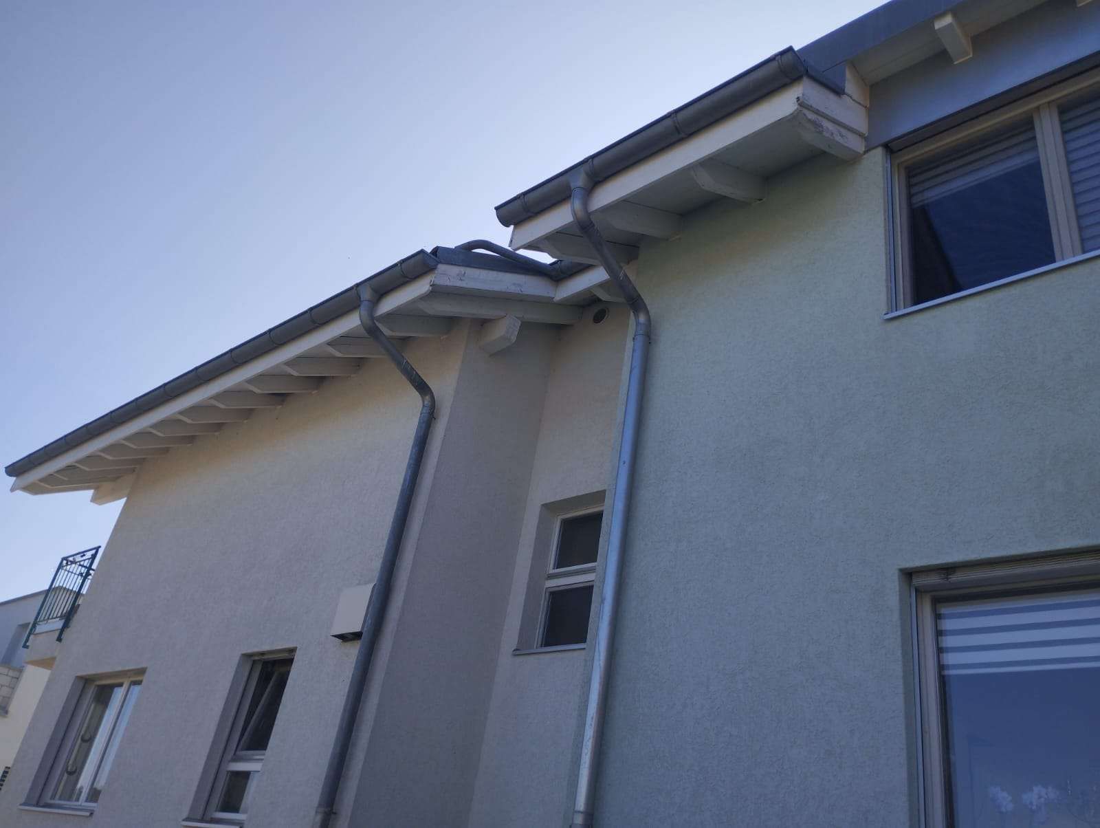 Unser Experte arbeitet in bis zu 10 Metern Höhe, um ein Lüftungsrohr von Wespen zu befreien. Je höher der Einsatzort, desto größer sind die Herausforderungen und Sicherheitsanforderungen. Um ein sicheres Arbeiten zu gewährleisten, nutzt er je nach Gegebenheit eine stabile Leiter oder ein zuverlässiges Gerüst.